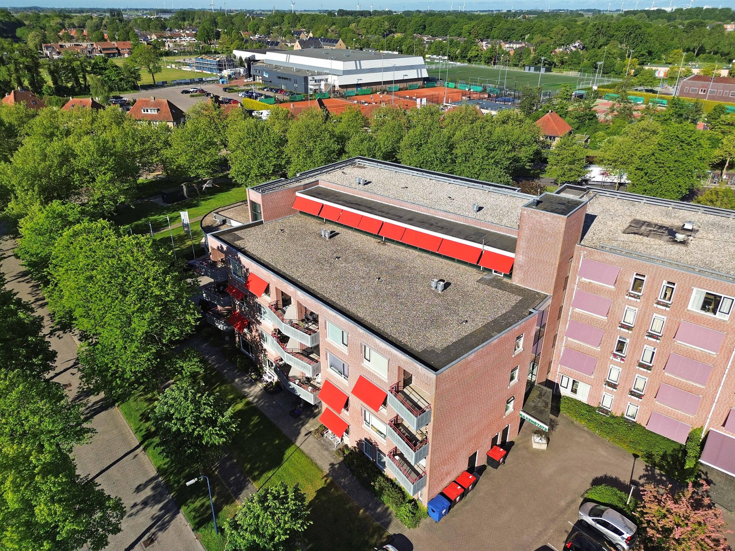 Direct naast het gebouw ligt een eigen parkeerterrein met circa 25 parkeerplaatsen. Dit terrein is afgesloten met een slagboom.