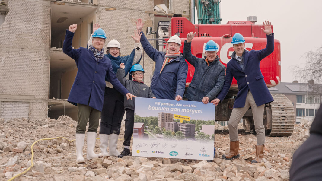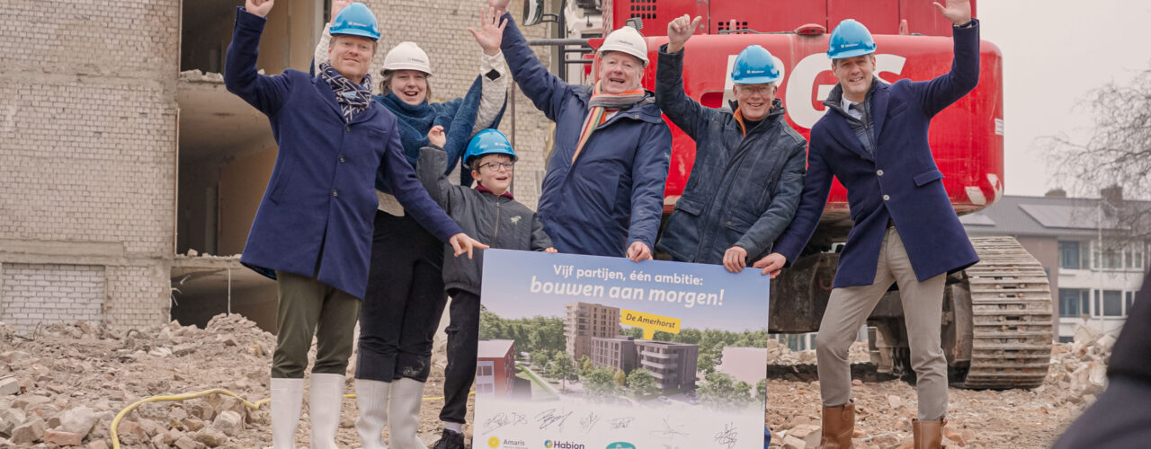 Met het sloopfeestje is de volgende fase officieel gestart. De komende maanden wordt het terrein klaargemaakt voor de nieuwbouw van de Amerhorst: een moderne, groene en toekomstbestendige woonplek waar Amersfoortse ouderen samen goed oud kunnen worden.