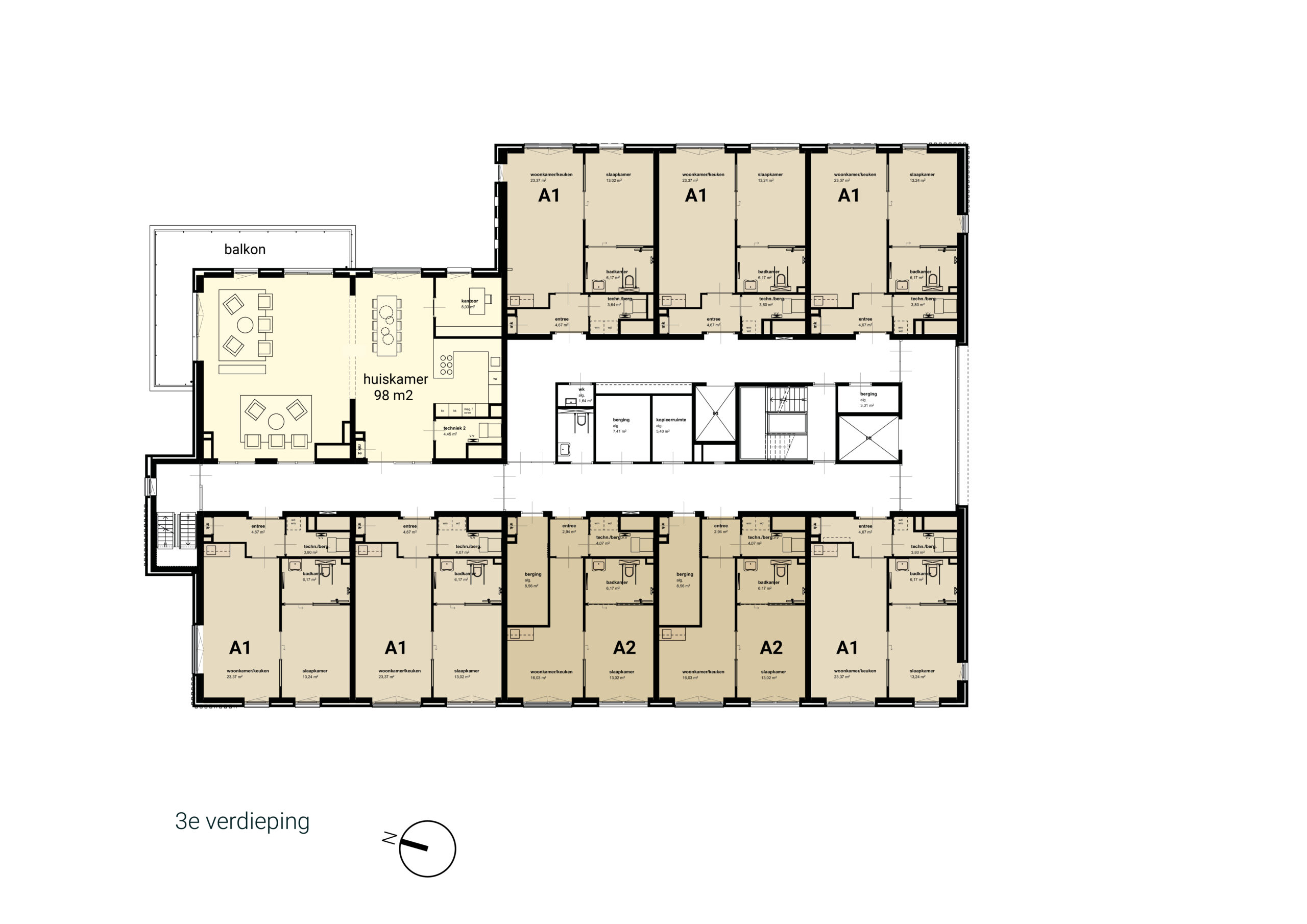 Gebouw A heeft 40 zorgappartementen met bijbehorende ontmoetingsruimten. De appartementen zijn bedoeld voor ouderen met een zware zorgindicatie, vooral psychogeriatrie. Gebouw B heeft 36 vrije sector appartementen voor ouderen. Samen met De Amerrank biedt dit voor alle inkomensgroepen huisvesting voor ouderen die geschikt zijn om nu of in de toekomst zorg aan huis te ontvangen.